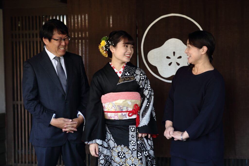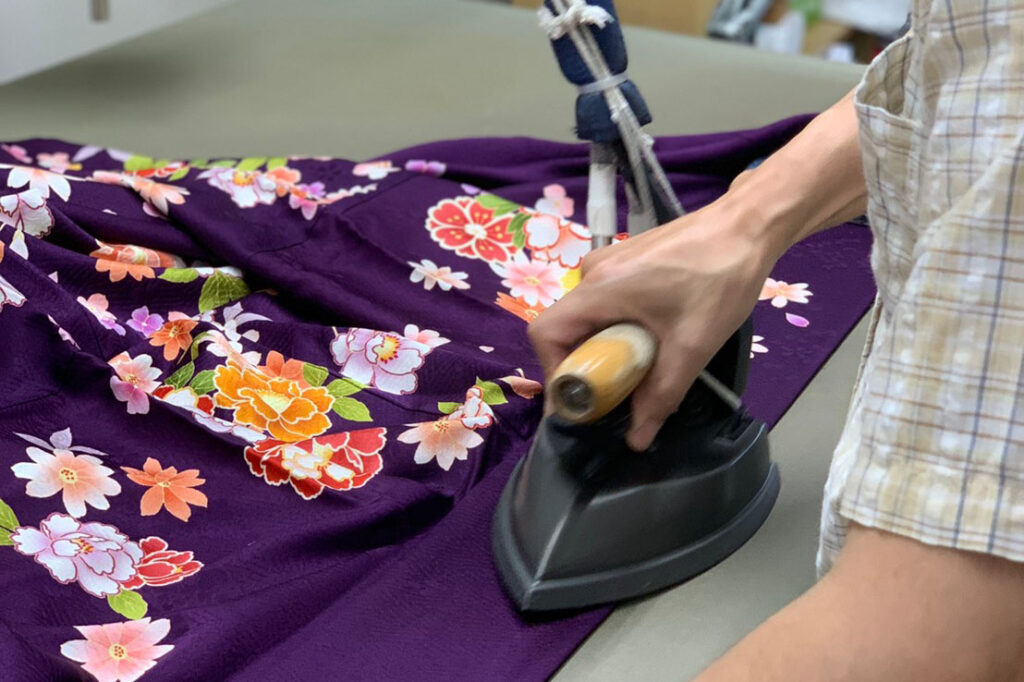 しみ抜きを行う染色補正技師や、サイズ直しや仕立て替えを行う和裁士、振袖コーディネーターなど、様々なプロがタンスの中に眠っていた振袖を現代によみがえらせ、お嬢様にぴったりのスタイルへと導くお手伝いをさせて頂いております。